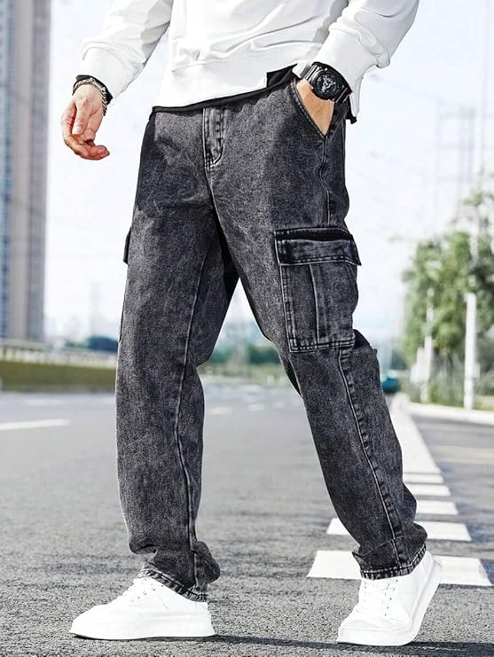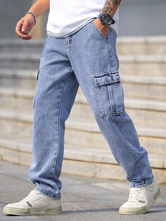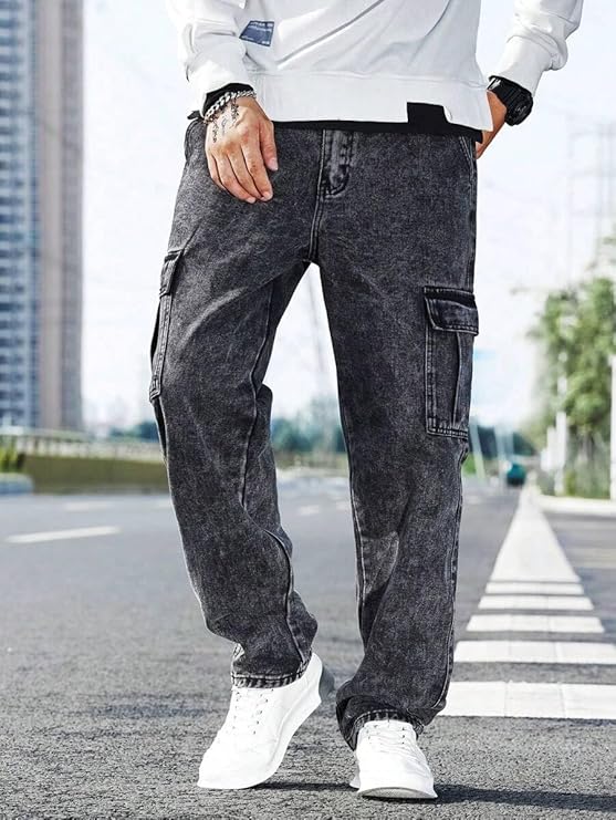 - Men Loose Fit Men’s Flip Pocket Cargo || Men’s Stylish Cotton Loose Fit Denim Cargo Jeans || Multi-Pocket Styling || Perfect for Casual Fashion || Comfortable Classic Men’s Outerwear
